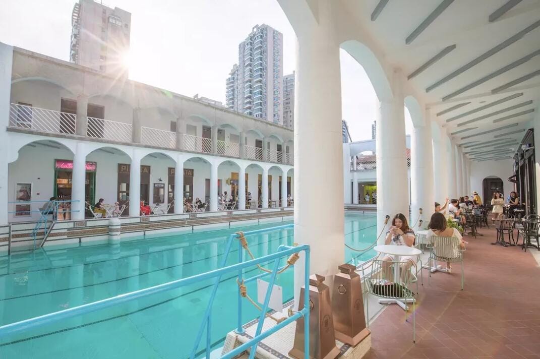 哥伦比亚乡村俱乐部旁的海军俱乐部内,有一个全上海罕见的“英制”露天泳池。这里不仅是90多年前外籍侨民和上生所员工家属夏天钟爱的娱乐场所,穿越百年时光,如今,这里已然成为红遍魔都的时尚达人摆拍取景地。