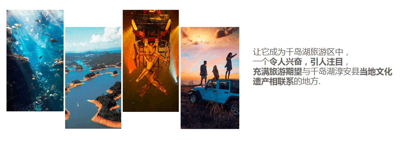 千岛湖文化主题乐园项目,是将海洋文化与千岛湖本土的湖泊文化、历史文化相结合,基于千岛湖区域丰富的自然旅游资源,以及古城、历史遗迹、水文化等资源,满足千岛湖旅游业发展设想,结合大连圣亚现有的优势,融入独具特色的海洋文化主题,以开放性、延续性、包容性为理念,规划建设的集展示、休闲、娱乐、居住等多功能为一体的复合型旅游综合体项目。