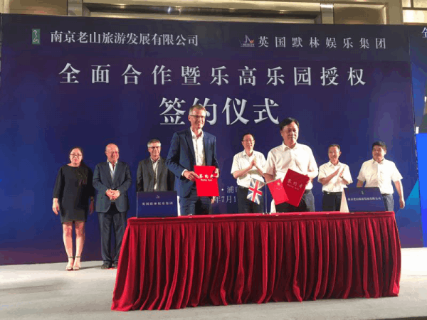 7月11日上午,南京老山旅游发展有限公司与英国默林娱乐集团全面合作暨乐高乐园授权签约仪式正式举行,浦口区政府与默林娱乐集团签约,双方正式达成关于国际文化旅游项目全面合作的协议,致力于在中国发展默林集团的旅游娱乐项目,共同打造成集旅游观光、娱乐亲子、度假休闲、高端购物及文化交流等功能于一体的国际高端项目,最终成为享誉全球南京老山国际文化旅游城。