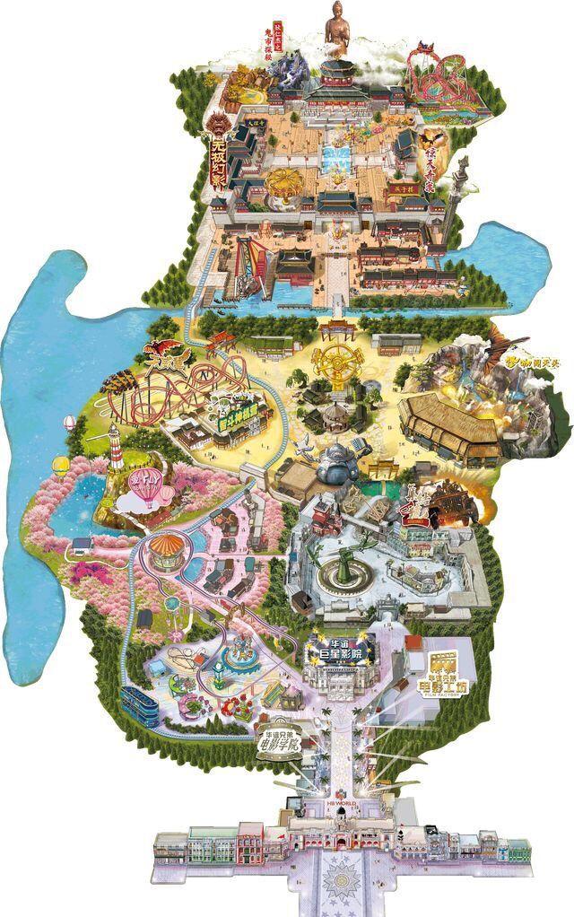 华谊兄弟电影世界(苏州)有“星光大道”、“非诚勿扰”、“集结号”、“太极”、“通天帝国”五大主题区域,以及专为亲子家庭设计打造的“阳澄宝贝地盘”。全园三十多种互动娱乐项目,十多个演艺秀,多家电影主题餐厅和各种星享礼品,将互动、娱乐、趣味、文化与科技融合,独创电影IP全方位沉浸式体验。