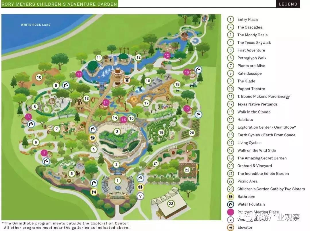 Rory Meyers Children's Adventure Garden 是达拉斯植物园的一部分,于2013年9月21日开放,位于下图达拉斯植物园平面的右上角,占地8英亩(约32375平方米)。