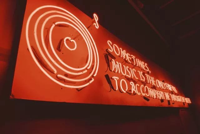 “睡音乐”主题酒店是亚朵首次与音乐领域的头部IP合作,也是网易云音乐第一次在线下实体空间为用户带来沉浸式的音乐氛围体验。这家酒店中注入了众多网易云音乐的主题元素,以活泼的红色作为主体色调,大堂则以闪烁的霓虹灯带等美式工业风元素营造了复古、热情的氛围。