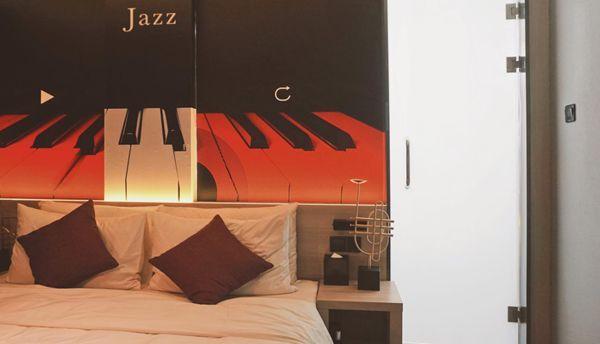 为了给喜好各种不同类型音乐的乐迷带来独特的体验,“睡音乐”酒店按照楼层打造了古典、民谣、爵士、电音四个主题,并按照相应主题注入了丰富的音乐元素。走进古典乐主题房,就仿佛置身于交响音乐会现场,诸如窗帘、落地灯、装饰画、服饰、配饰、床上用品等都走复古风。