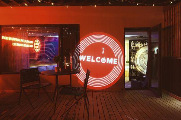 而电音派对主题房中则通过酷炫的灯光和大露台上的霓虹字,打造出嗨爆的party感,此外,爵士乐主题房中的迷你萨克斯,民谣主题房中大部分装饰都走怀旧风格,都与这些音乐风格的调性完全相符。