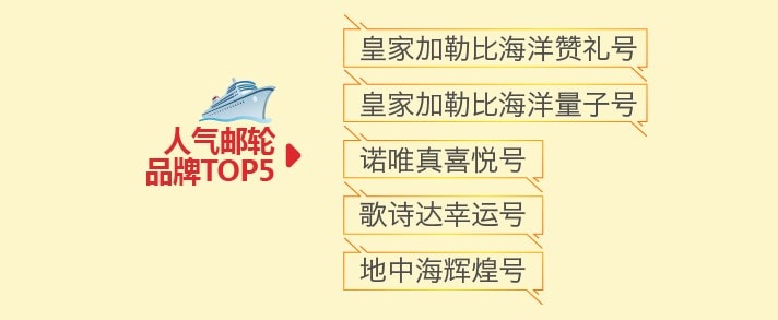 邮轮游在今年黄金周期间也吸引了众多游客。在航线和行程选择上,除了日本、东南亚等常规方向外,地中海、阿拉斯加、多瑙河等高端远洋线路也被越来越游客关注,地中海航线、多瑙河航线、加勒比航线、莱茵河航线、美洲航线成为热门远洋航线TOP5,皇家加勒比海洋赞礼号、皇家加勒比海洋量子号、诺唯真喜悦号、歌诗达幸运号、地中海辉煌号等邮轮品牌人气较旺。