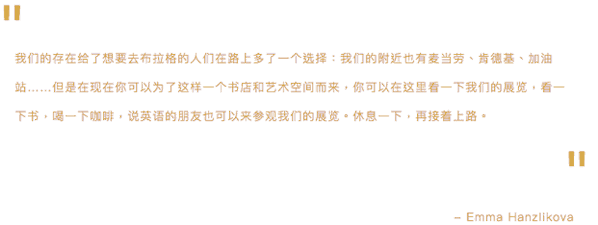 为了让8号空间摆脱拒人千里之外的高冷印象,艾玛将空间的首次展览献给了当地历史悠久的纺织艺术品,呼应对老厂房拥有回忆和情感的当地居民,也让本就对艺术无比亲近的捷克人再次感受艺术与生活的交融。“我们针对每次展览都会更换书店的书籍选择、陈列,让书店、展览、空间、服务整体联结起来,构成完整而丰富的体验。”
