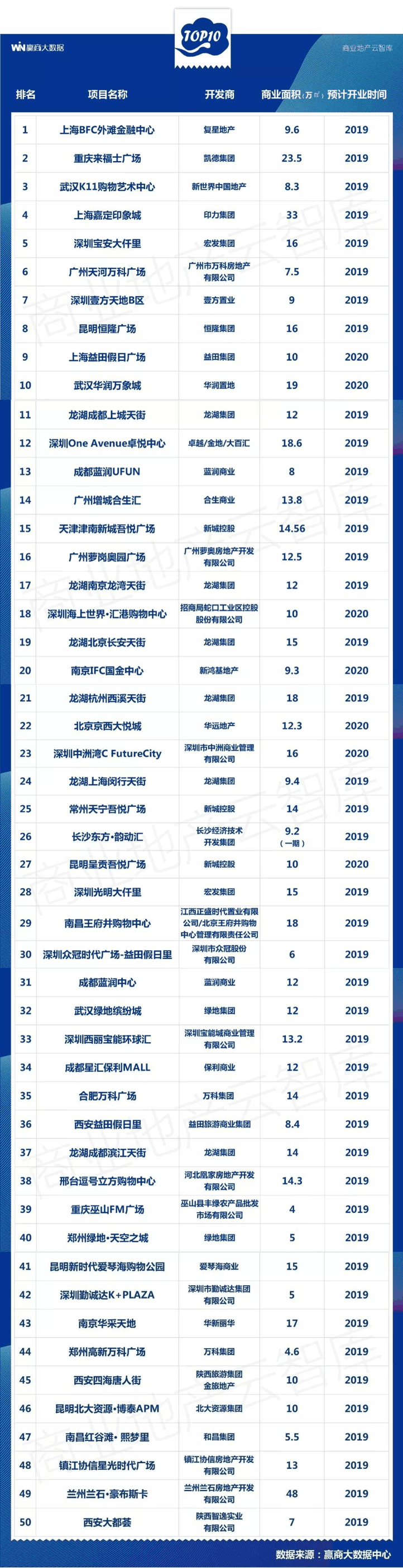 数据洞察|最受品牌商关注拟开业购物中心50强!